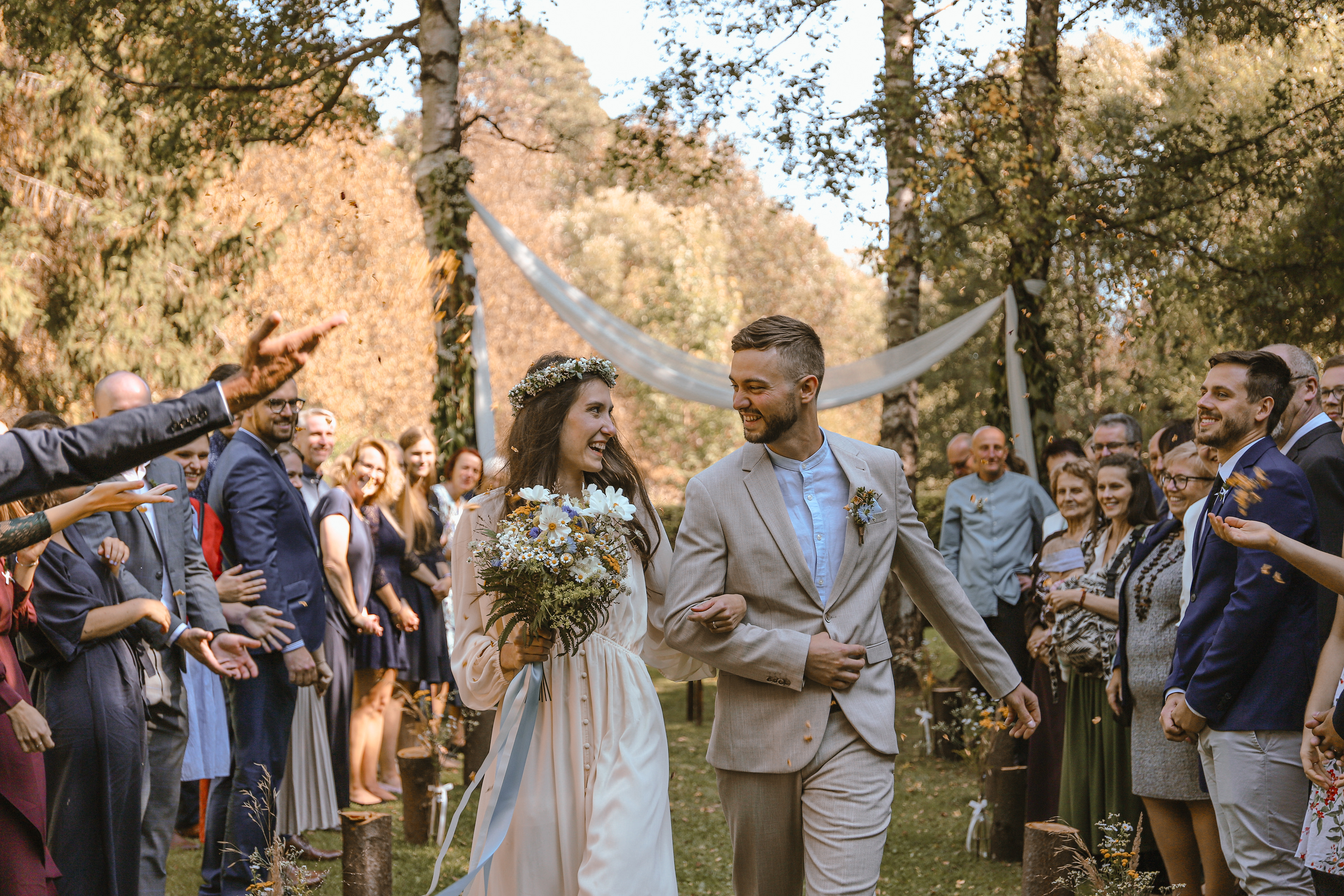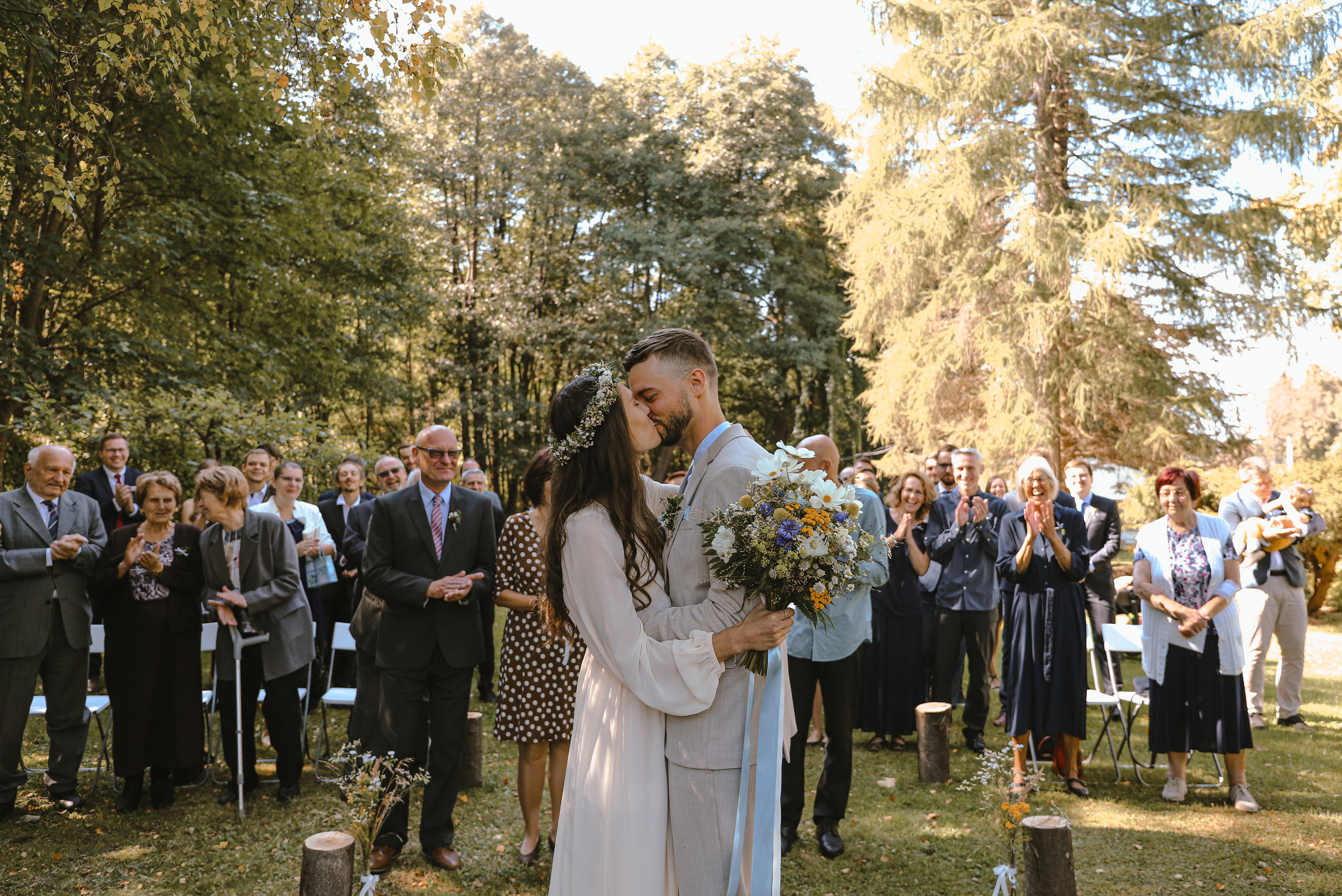Svatba uprostřed babího léta u ženicha na rodinné chalupě, kam jezdí od narození.
